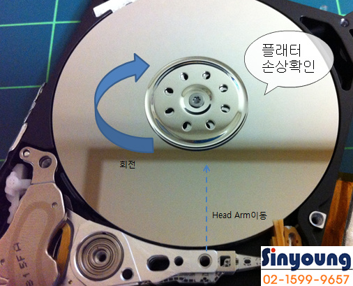 가장 먼저 platters(플래터), Head(헤드) 손상 여부를 육안으로 확인합니다.